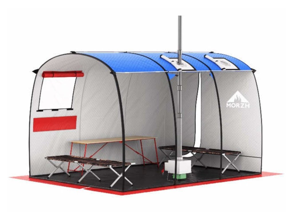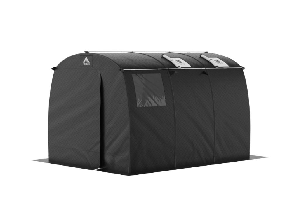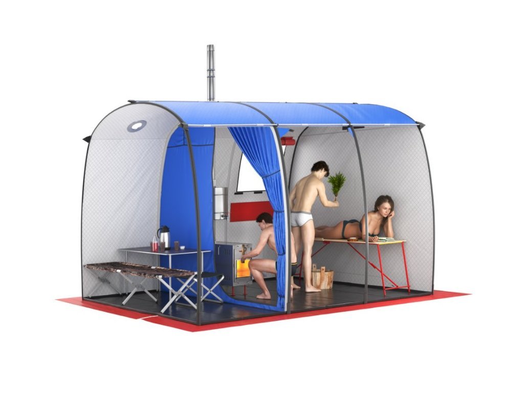 Prostornější mobilní stanová sauna z třívrstvého materiálu prošívaného technologií Thermosteck. Materiál se skládá z vnější voděodolné vrstvy OXFORD240, střední patentované izolační vrstvy Siberia a vnitřní lehké, ale pevné látky Taft. Tento materiál zaručuje rychlejší vyhřátí, delší udržení tepla a menší spotřebu paliva, než jednovrstvé varianty. Vyrobeno a testováno na Sibiři, takže ani v extrémních mrazech není problém saunu vyhřát na 100 i více stupňů během 20-30 minut.